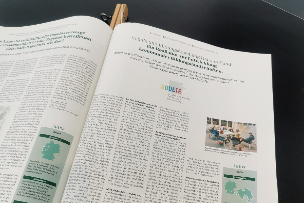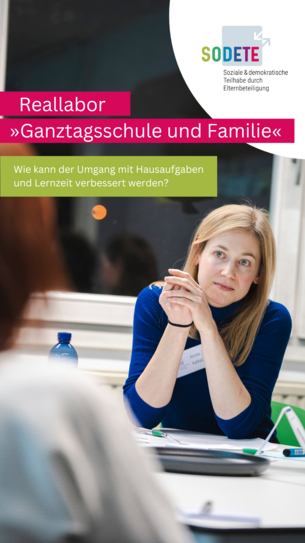 Unter dem Motto »Ganztagsschule und Familie« tauschten sich die Eltern im gemütlichen Elterncafé aus und teilten ihre Anliegen, Erfahrungen und Wünsche zu den Themen Lernzeitgestaltung und Hausaufgaben. In einer anschließenden SODETE-Werkstatt mit Verantwortlichen aus Schule und Kommune wurde gemeinsam debattiert, wie die Lernzeit im Ganztagsschulkontext noch gewinnbringender für alle Schüler:innen gestaltet werden kann. Gemeinsames Ziel ist der Abbau von Bildungsungleichheiten. Aus den Forschungsdaten des Projektes sowie dieser partizipativen Arbeit entwickelte das SODETE-Team ein Diskussionspapier. Dieses wird nun mit Verantwortlichen in Schule und Kommune diskutiert. Im nächsten Schritt werden die Teilnehmer:innen gemeinsam entscheiden, welche Maßnahmen weiterverfolgt werden und diese umsetzen.